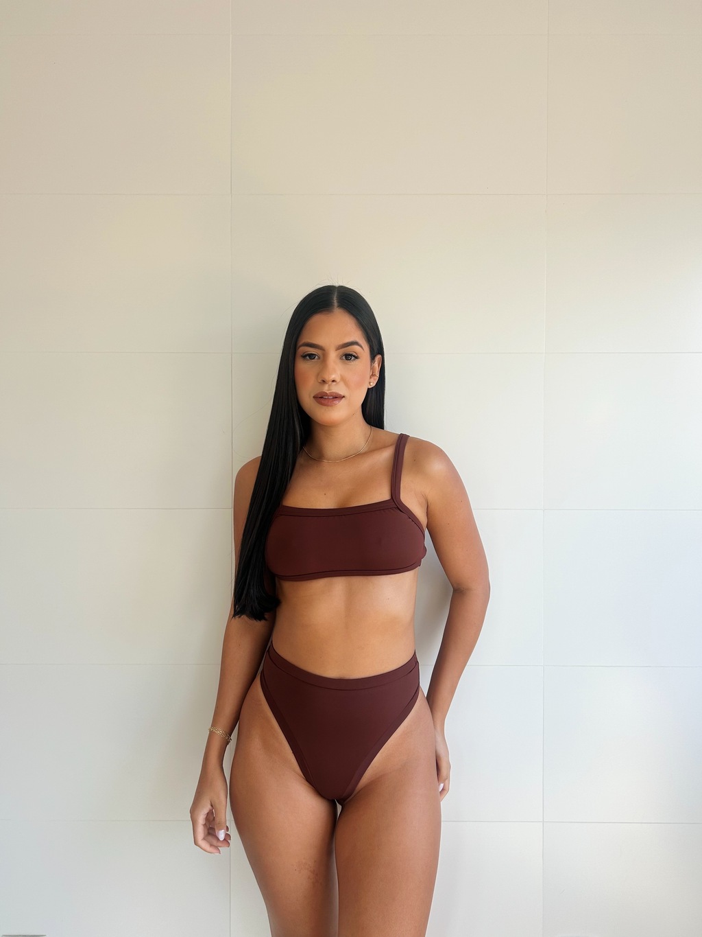 Com elástico ao redor do top e calcinha para melhor ajuste das peças ao corpo.